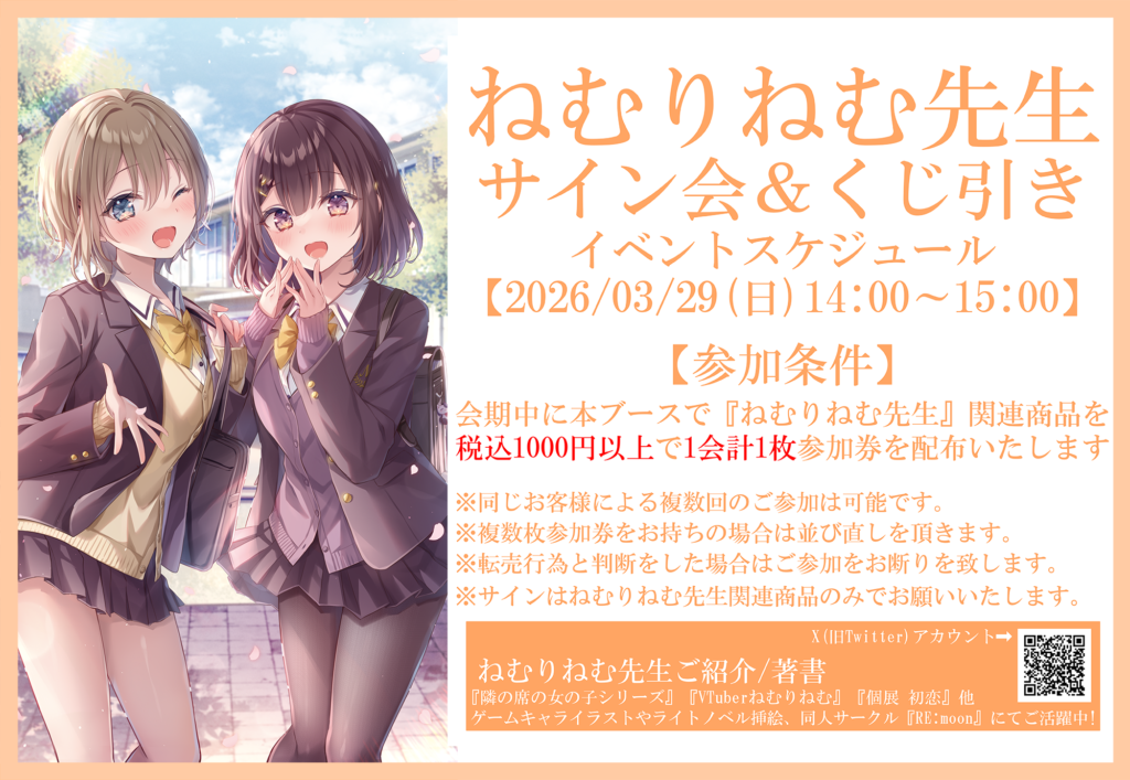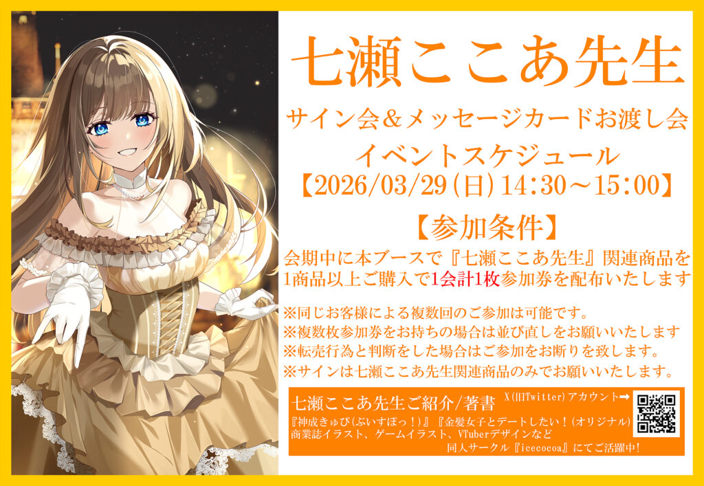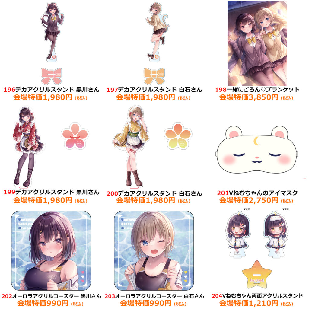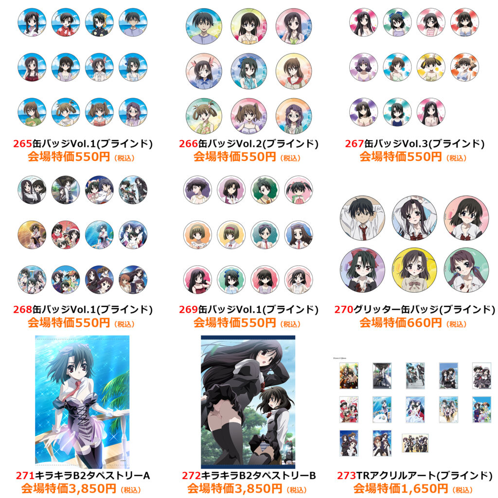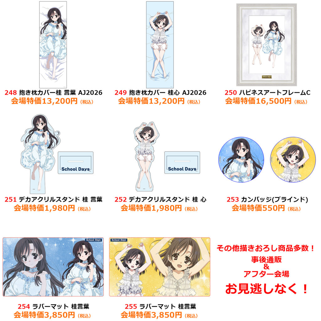 | 注意事項 | ●商品画像はイメージです。実際の商品とは異なる場合がございます。 ●商品・配布物につきましては、数量に限りがございます。予めご了承ください。 ●内容に関しまして、予告なく変更や中止となる場合がございます。 ●混雑時や荒天時など、安全が確保できないと判断した場合、列の作成を一時停止したり列を解消することがあります。 ●徹夜など、前日からの会場付近への来場は禁止されております。 ●会場係員の誘導、指示に従ってください。ご協力をお願いいたします。 |